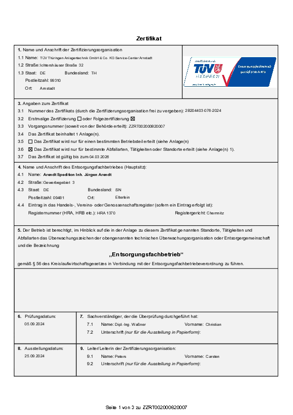 Zertifizierung zum Entsorgungsfachbetrieb für alle Abfallarten
